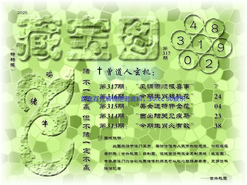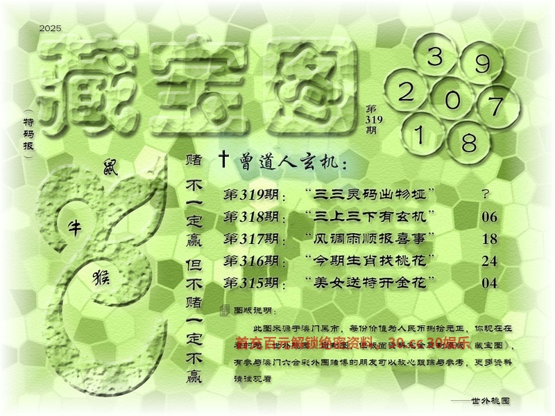 321期藏宝图曾道人玄机:更新 解:更新 解特肖:更新 |
